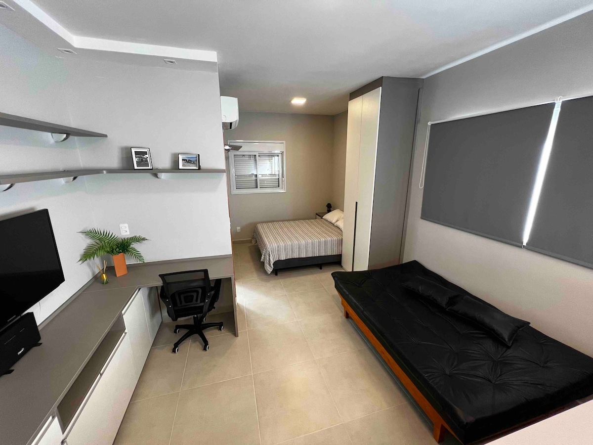 Feel at home in apartment 1407 Unique Residence 📍 A unique and decorated apartment designed to give you the best experience 📍 This 45 m² apartment was completely renovated by architect Felipe Torelli, offering exclusivity, charm, and unique functionalities 📍 Equipped with an induction cooktop, electric oven, and electric blinds in the bedroom 📍 Glass enclosure on the balcony and partial sea view 📍 Ideal for couples and business travelers 📍 Accommodates a third adult or up to 2 children