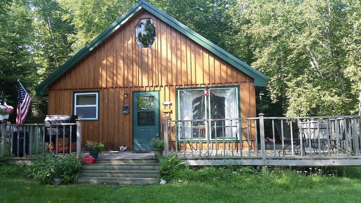 One bedroom cabin sit 50 feet from the shores of Caribou lake, clarity of up to 40 ft. and 160 feet de. One of the few lakes that still offer habitat for Lake trout. The cabin has a deck overlooking the lake, a fireplace, full kitchen and sleeps up to 5 or 6. A great place for a romantic retreat, and perfect for a small family or a few friends. Fantastic swimming, fishing and hiking trails right out your door. Well equipped kitchen, but no oil. Only one dog allowed in the summer.