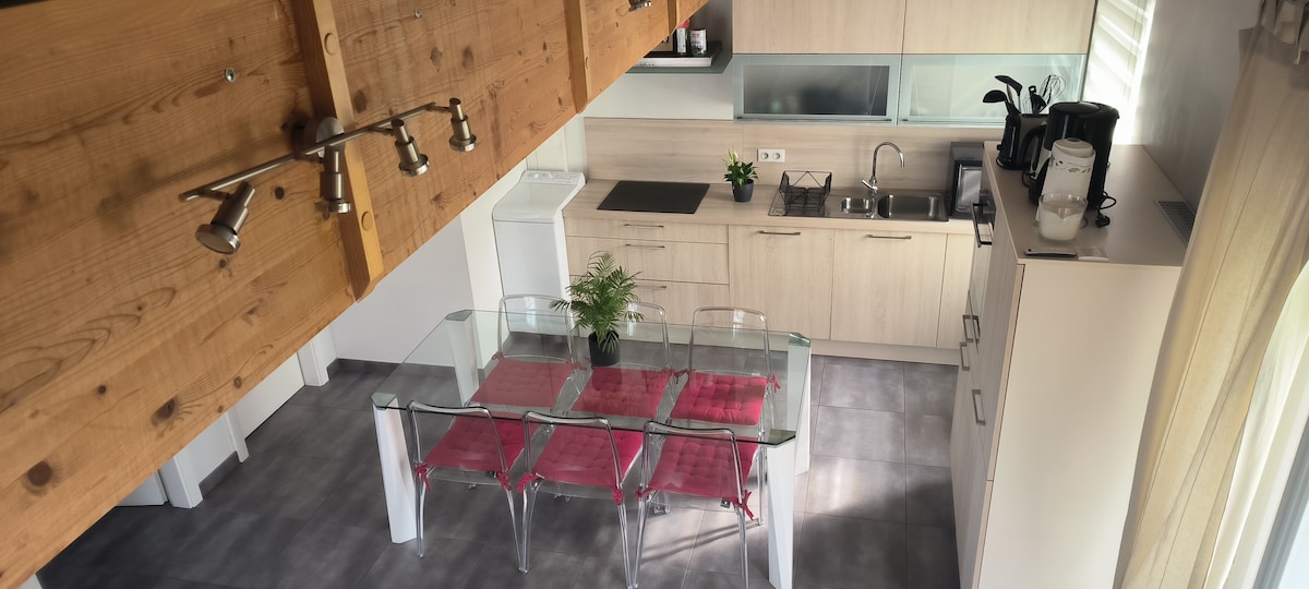 Appartement indépendant au 2e et dernier étage, refait à neuf, très proche centre ville Sélestat, permet de visiter la ville à pied. Parking gratuit devant la maison. Grand salon, salle à manger, poutres apparentes avec canapé-lit confortable 160, chambre avec lit 160, coin cuisine: frigo, plaques induction, micro-ondes, four, lave-vaisselle, cafetière avec expresso, Salle de bain avec douche, WC. En centre Alsace, idéal pour rayonner vers Colmar (15mn), Strasbourg (35mn), Kaysersberg,...