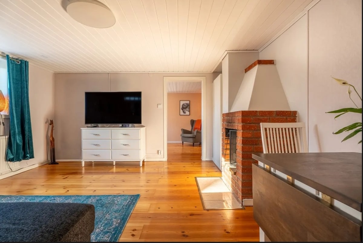 Designer cottage w/ one main house, (70m2) and a garden house, (20m2) and large private garden with heated spa bath. Ideally located just 25 minutes from Stockholm Skavsta Airport, 1 h 20 min from Stockholm and 5 minutes from the ocean. Very close to beautiful hiking trails and forrest. Suitable for relaxing times all year around.