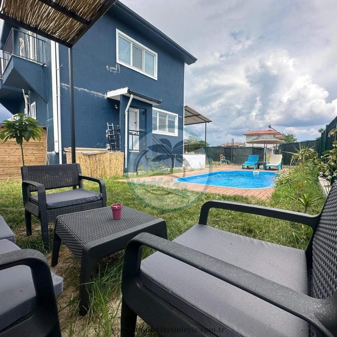 Merkezî bir konumda bulunan bu yerden tüm grup olarak her şeye kolayca erişebilirsiniz.Müstakil ev. kendine ait havuzu var. ve ücretsiz park yeri var. sesiz sakın ve dinlendirici bir ev.kendine ait bahçe ve kendine ait havuzu var.çamaşır makinesi,wifi, tv, buzdolabı, yemek pişirmek için ocak var.