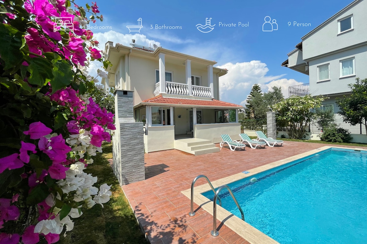 Villa Kalinda, Dalaman Havalimanına 5 dk mesafede olup villada; 4 yatak odası, 3 banyo, 1 çamaşır odası ve 1 giyinme odası bulunmaktadır. Müstakil, korunaklı, kendine ait havuz ve geniş bir bahçeye sahip olan lüks ve konforlu döşenmiş Villa Kalinda, kalabalık aileler ve arkadaş grupları için idealdir. Villadan ortalama 25 km mesafede dünyaca ünlü sahillere, koylara, adalara, kaplıcalara, tarihi ve turistik alanlara gidebilirsiniz. Bilgi ve rezervasyon için; @villakalinda