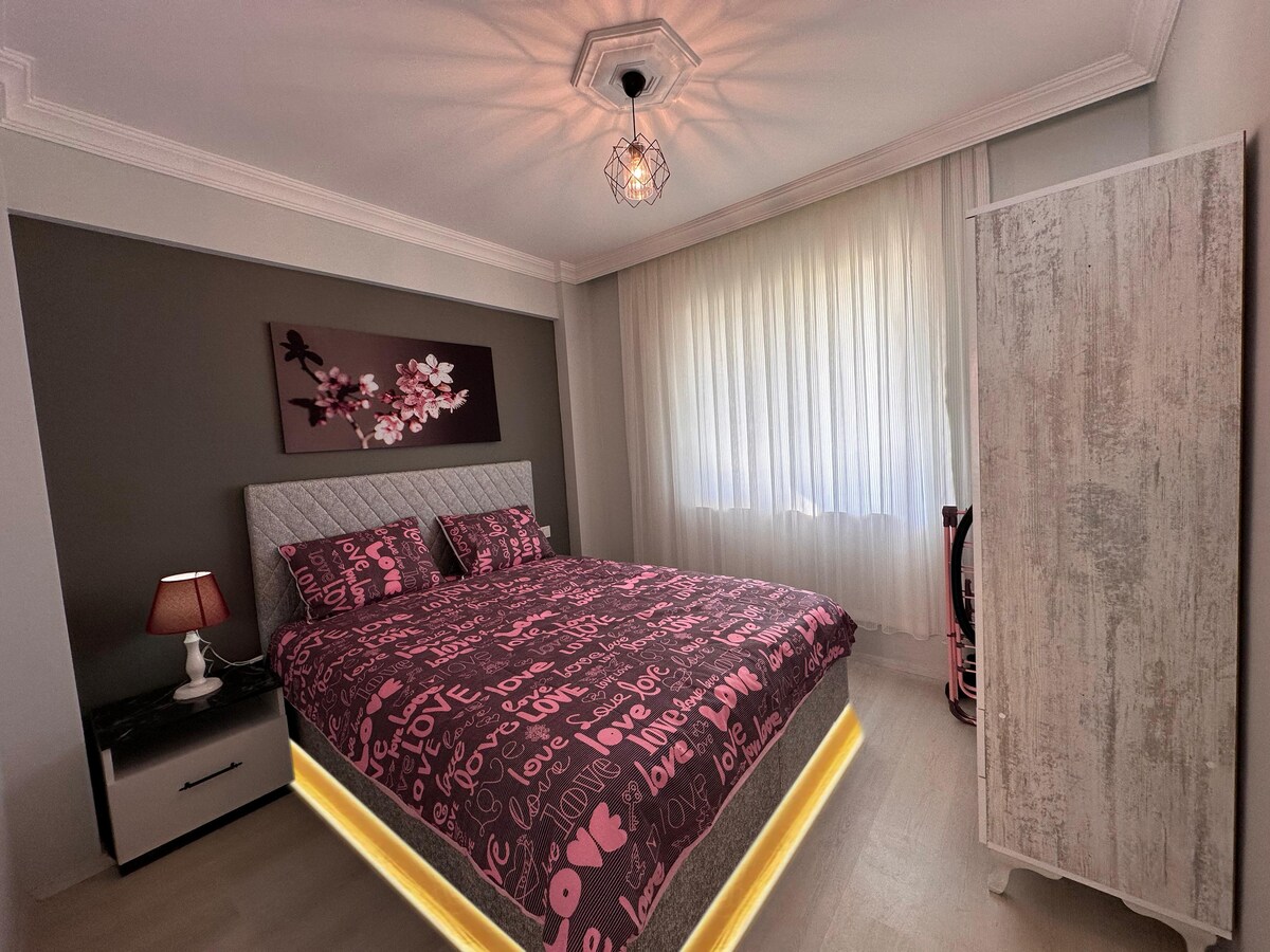 Dairemiz 2+1 olup 125 metrekaredir.2 tane yatak odası ve büyükçe bir oturma salonu, içinde mutfağı ve masası olan çok geniş ferah bir dairedir.Dairemizde 1 tane banyo , 2 tane tuvalet bulunmaktadır.Ayrıca 2 tane balkonumuz olup biri ön cepheye diğeri yan cephe bakmaktadır. 6 Kişiye kadar konaklama yapabilirsiniz.Dairemizde 2 adet tv , tüm odalarda klima , çamaşır ve bulaşık makinası , buzdolabı , ocak , ankastre fırın , mutfak araç gereçleri bulunmaktadır.