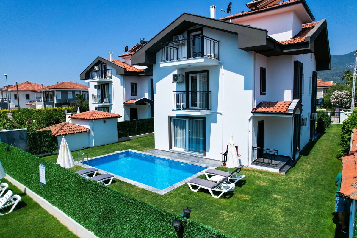 Dalaman Havalimanı’na sadece 5 dakika mesafede, ESKA İncebel’in en büyük ve tam müstakil lüks villası. Avrupa ve İngiltere’den Dalaman’a direkt uçuş sayesinde uçağınızdan indikten sonra 5 dakika içinde stressiz şekilde villanıza ulaşırsınız. 4+1 oda, her odada ebeveyn banyosu ve TV, büyük özel havuz ve geniş bahçe. Dalaman Şifalı Kükürt Kaplıcası’na yakın konumda. Kayacık Plajı 5 dakika, Sarıgerme ve Sarsala 15 dakika. Unutulmaz ve zahmetsiz bir tatil için hemen rezervasyon yapın!