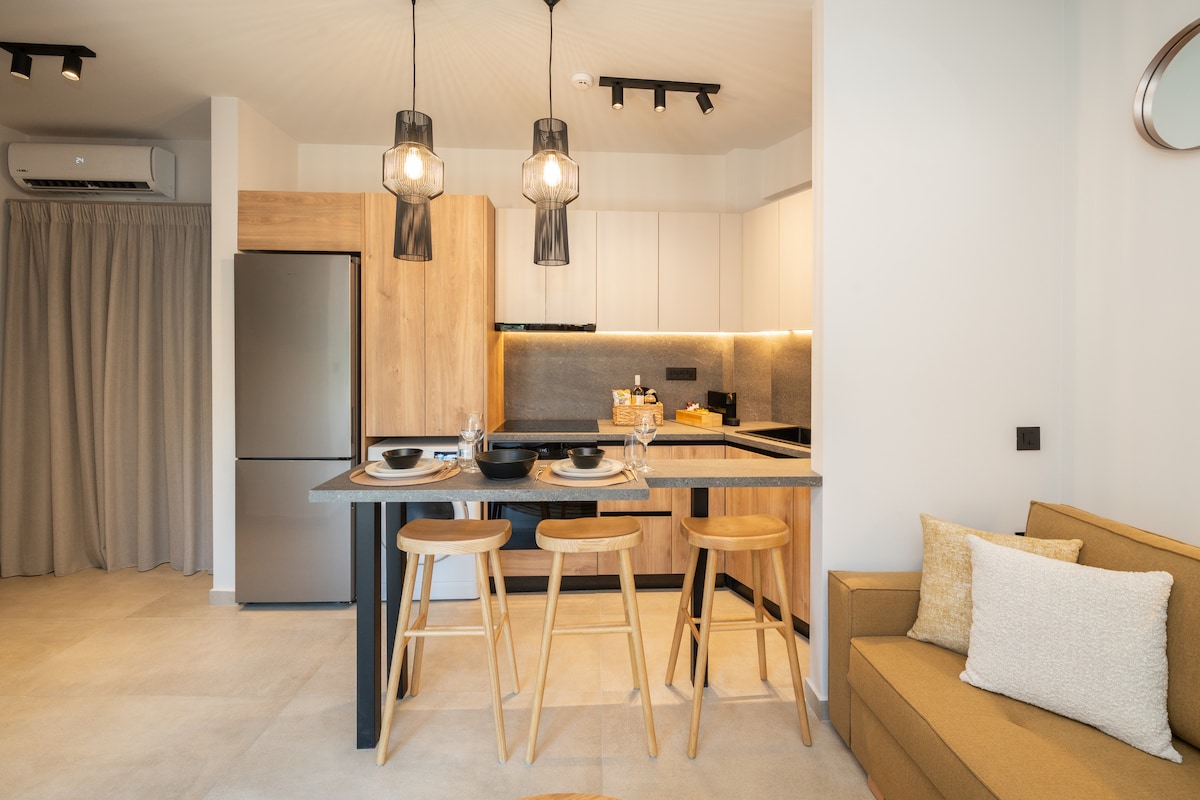 A simple, fresh and modern apartment that is situated in the perfect location if one wishes to get to know Kos and all it has to offer. It offers great views of the sea as it situated on the road next to the sea front.