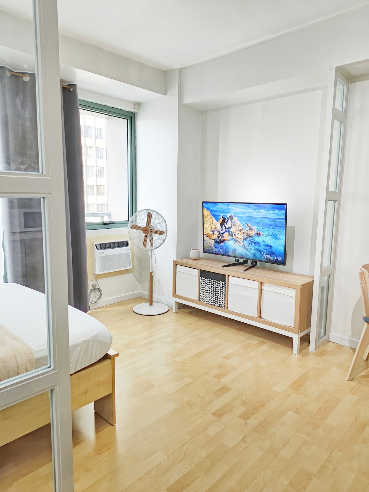Welcome, Dear Guest! The space includes a small balcony and is equipped with WiFi and cable TV. After making your booking, please send a copy of your valid ID via email, Viber, or the chatbox. Parking is available in the building's basement. The rates are as follows: ₱50 for the first 3 hours, and ₱30 for each additional hour. Please note that there is an extra overnight parking fee of ₱200 if you park after 2 AM for the following day. The unit accommodates a maximum of 2 adults and 1 minor.