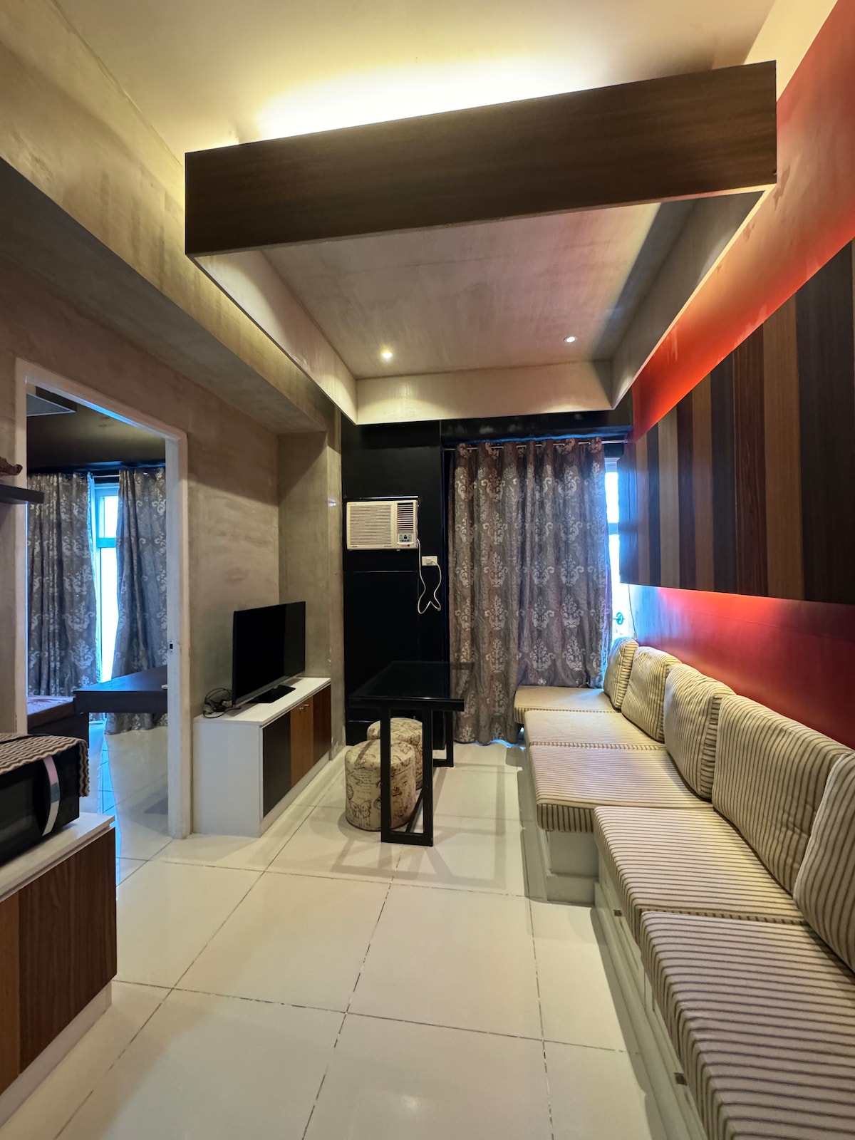 Located in the center of Makati red-light district, this one bedroom apartment is renovated & fitted out to suit an endless summer vacation vibe There are 2 flatscreen TVs, split type AC in the bedroom, comfy queen bed, electric reclining love seat, new karaoke speaker, kitchen plus a spacious balcony for smokers 🚬 Registered guests are allowed to have visitors but room provisions can accommodate 2 to 5 pax staying overnight. If you prefer utter silence, this might NOT be the place for you‼️