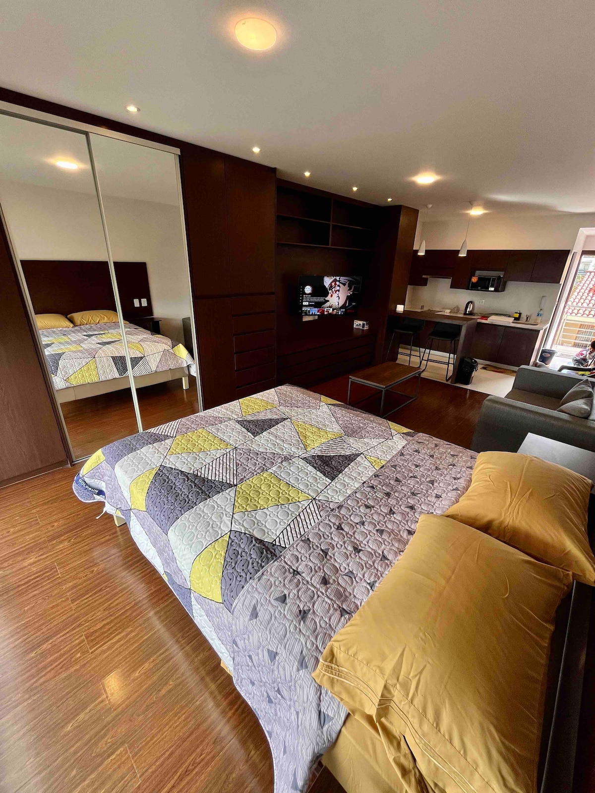 Te presentamos nuestro nuevo garzonier! un espacio acogedor que te enamorará a primera vista. Equipado con todas las comodidades para brindarte una experiencia inolvidable. Ideal para una sola persona o pareja, este lugar te ofrece todo lo que necesites para sentirte como en casa. Está ubicado en el segundo piso.