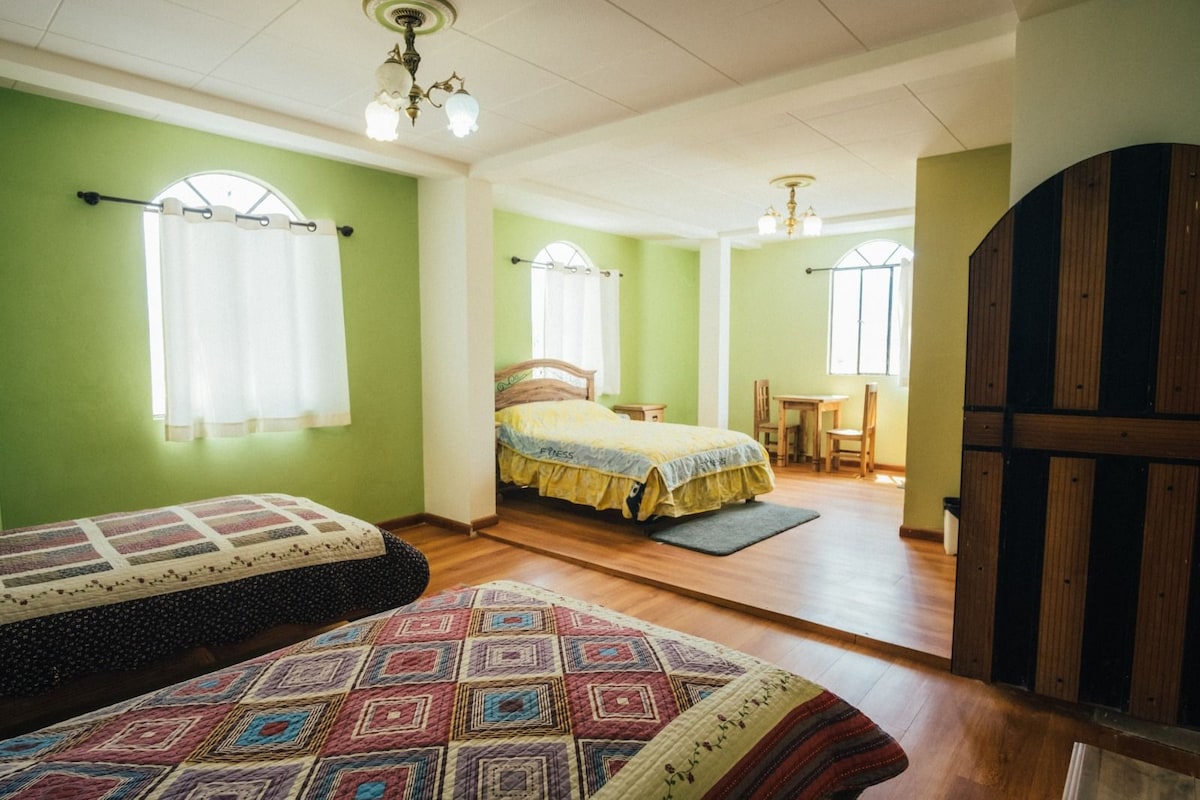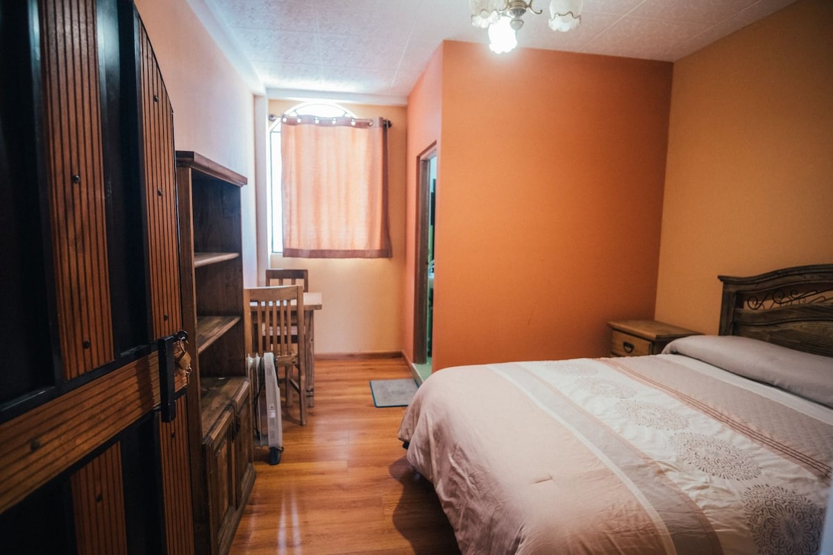 Habitación cómoda, amplia, con acceso a todo: terminal de buses, mercado central, transporte público. Habitación para 2 o 3 personas con dos camas y un sofá cama y baño privado. Áreas compartidas: sala, cocina y terraza.