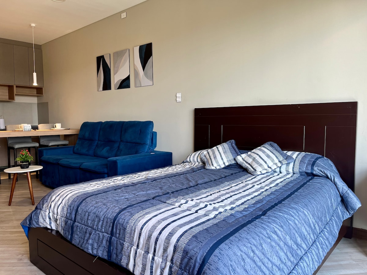 Descansa y disfruta en este moderno monoambiente, diseñado para brindarte confort y tranquilidad. Ubicado en una zona privilegiada, este espacio cuenta con todas las comodidades necesarias, incluyendo Smart TV, WiFi de alta velocidad, lavadora propia. Además, tendrás acceso a piscina (previa reserva), jacuzzi y sauna (pago por uso). Perfecto para viajes de negocios o escapadas a la ciudad. Disponible de parqueos para alquilar en el edificio.