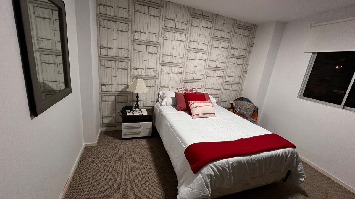 Ambientes amplios y dormitorios cómodos, confortable y equipados TV y calefacción en la sala, cocina completamente cocina, dos baños y el baño principal con tina/ducha con agua caliente las 24 horas. El edificio céntrico, a pocas cuadras de los Mercados Centrales Campero y Bolívar, hospital Cristo Rey, Multicines PLAZA y la Plaza Principal