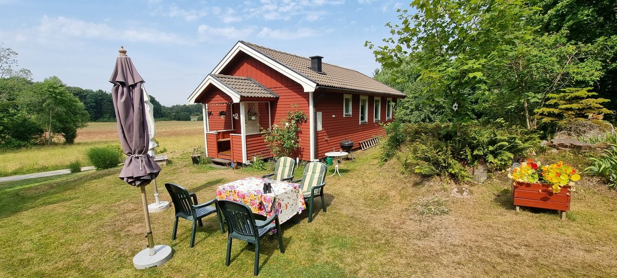 Stuga på 50kvm med egen strand & äldre standard. Ett sovrum, ett badrum med toalett och dusch samt tvättmaskin. Fullt utrustat kök med kyl och frys sam induktionshäll med ugn. Bäddsoffa i vardagsrummet. Matplatser för 6 personer både inne och ute på altanen som vetter mot havet. Gasolgrill, parasoll, tillgång till egen strand. Notera att det är ett par trappsteg ner till stranden (!) 3kajaker, 1 dubbel 2 singel och samt en liten båt finns att tillgå under vistelsen.Vedeldad badtunna finns
