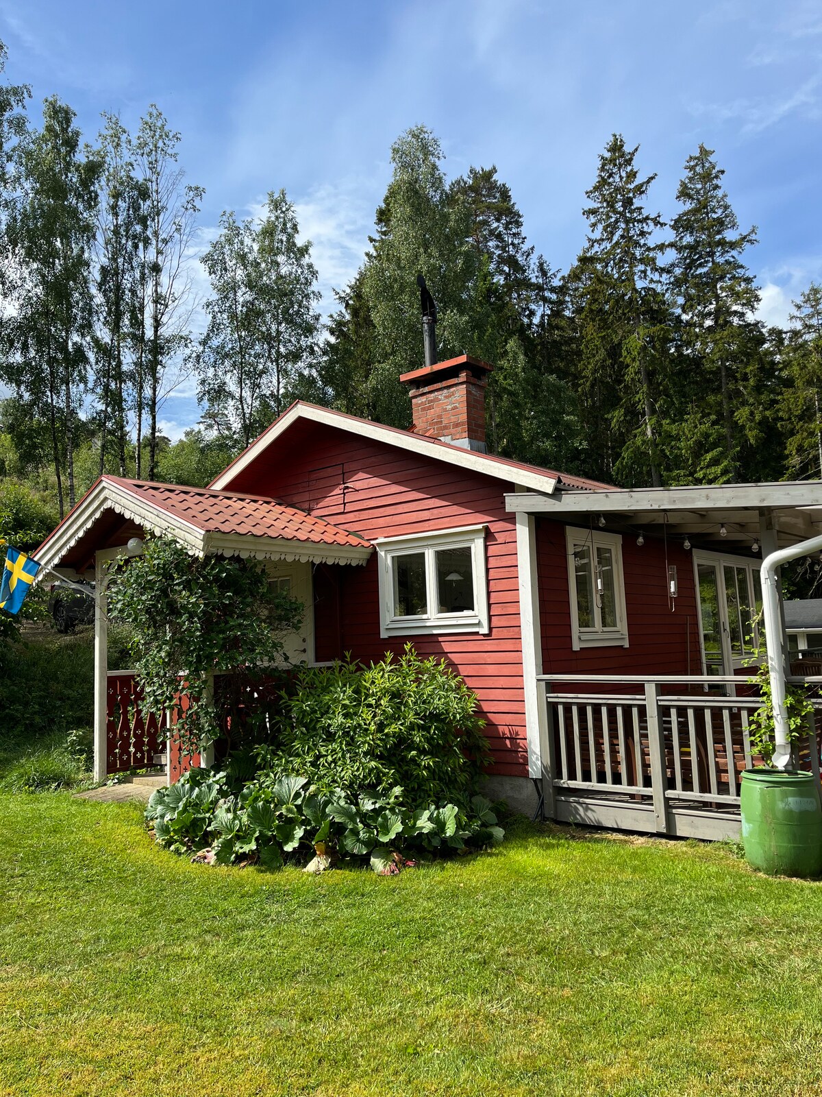 Stuga på 50kvm med egen strand & äldre standard. Ett sovrum, ett badrum med toalett och dusch samt tvättmaskin. Fullt utrustat kök med kyl och frys sam induktionshäll med ugn. Bäddsoffa i vardagsrummet. Matplatser för 6 personer både inne och ute på altanen som vetter mot havet. Gasolgrill, parasoll, tillgång till egen strand. Notera att det är ett par trappsteg ner till stranden (!) 3kajaker, 1 dubbel 2 singel och samt en liten båt finns att tillgå under vistelsen.Vedeldad badtunna finns