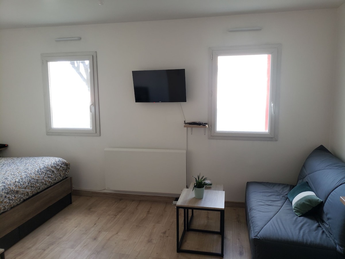 Profitez d'un logement élégant et central à 2 pas du tramway ( arrêt le cardo). Un arrêt de bus se situe également à proximité. La rue parallèle au logement vous offre de nombreux stationnements gratuits. Le studio dispose d'une kitchenette équipée, salle de bain et toilettes separés et espace de vie avec un lit double et un BZ. Draps et serviettes fournis avec supplément.