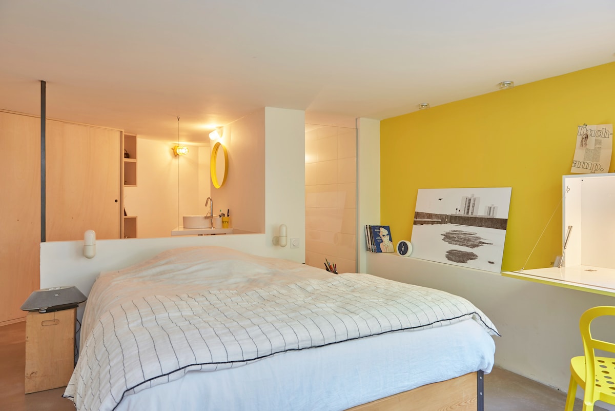 Charmant petit studio équipé sous les toits avec WC séparé privatif sur le même palier, au 4ème et dernier étage sans ascenseur donnant sur une vue panoramique. Dans un quartier agréable et chic loin des bruits de la ville, Convient à un couple ou une personne seule qui souhaite un point d'ancrage pour visiter Nantes.