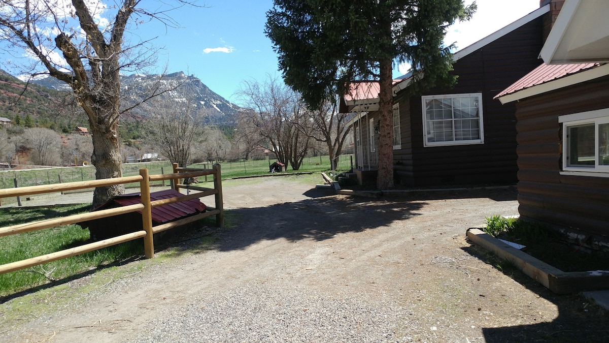 The Guest House at CC Blue Ranch is a beautiful, modern private house, located in a stunning valley below the majestic San Juan Mountains in SW Colorado. The house has a modern décor with a fully equipped kitchen, living room, dining room, 2 full bathrooms 2 bedrooms with queen beds, and a sleep loft (up a secure ladder) with 2 twin beds. Located in a year-round destination with tons of activities, great food options, shopping, hiking, biking and more.
