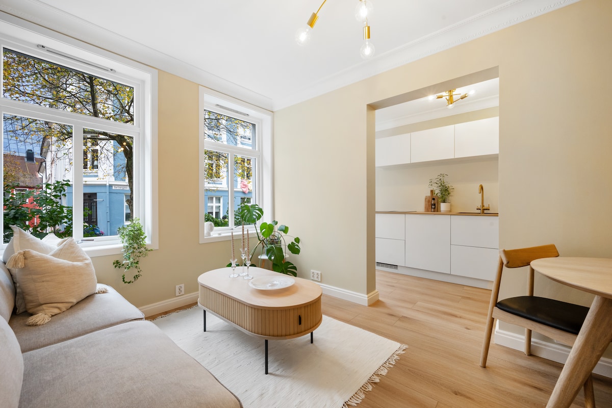 Nice apartment in a quiet courtyard in the city center. Walking distance to all facilities in Bergen. Grocery store just around the corner. The apartment consist of: - One bedroom with double bed - Bathroom with washing machine and dryer - Fully equipped kitchen - Dining room / bedroom - Living room with sofabed The apartment is fully furnished. WiFi and TV included.