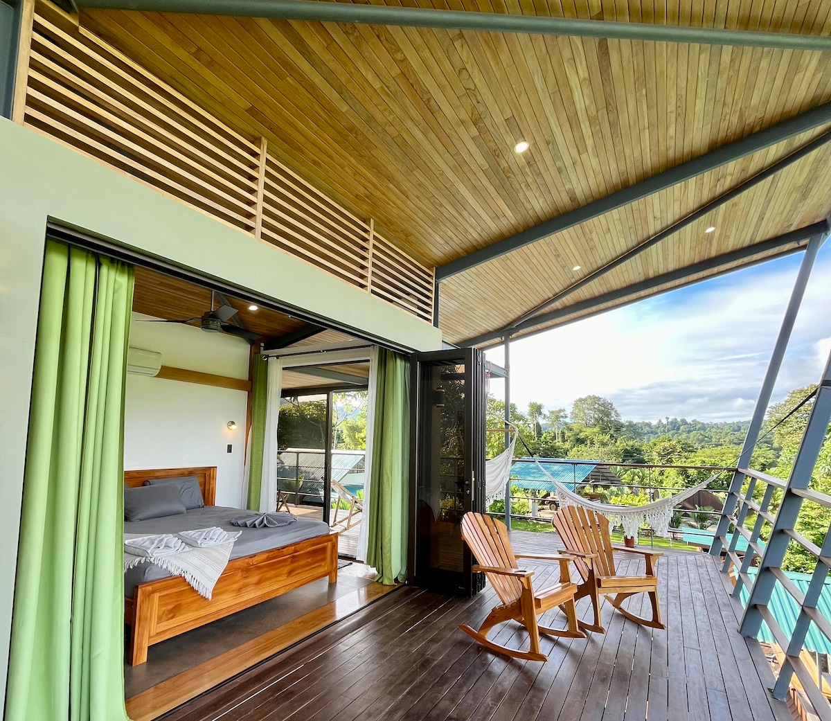 Imagine waking up in your own private casita, 1,000ft above sea level, just the two of you. Mornings start slow, coffee in hand on your terrace, with 180° panoramic views of the ocean, sky, and majestic mountains in Dominical. After exploring nearby waterfalls or relaxing by the shared pool, refresh with a luxurious rainfall shower while your partner prepares dinner with fresh, local ingredients in your full kitchen. Seamless indoor/outdoor Costa Rica living...immersive, natural and all yours!