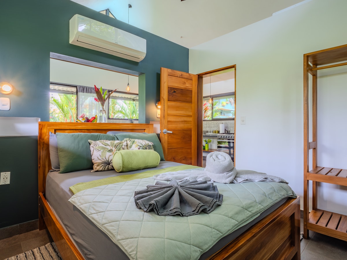 Escape to our Mountain View Suite at Villa Sueños De Bambu - a tranquil jungle retreat, minutes from Marino Ballena National Park, restaurants, gorgeous beaches, & the towns of Uvita/Dominical. With views of the lush rainforest and the pacific ocean, enjoy comfort, & natural beauty. Ideal for nature lovers, this serene escape offers easy access to waterfalls, wildlife, and adventure. Perfect for relaxing, exploring, or reconnecting with nature—don't miss your unforgettable Costa Rica getaway!