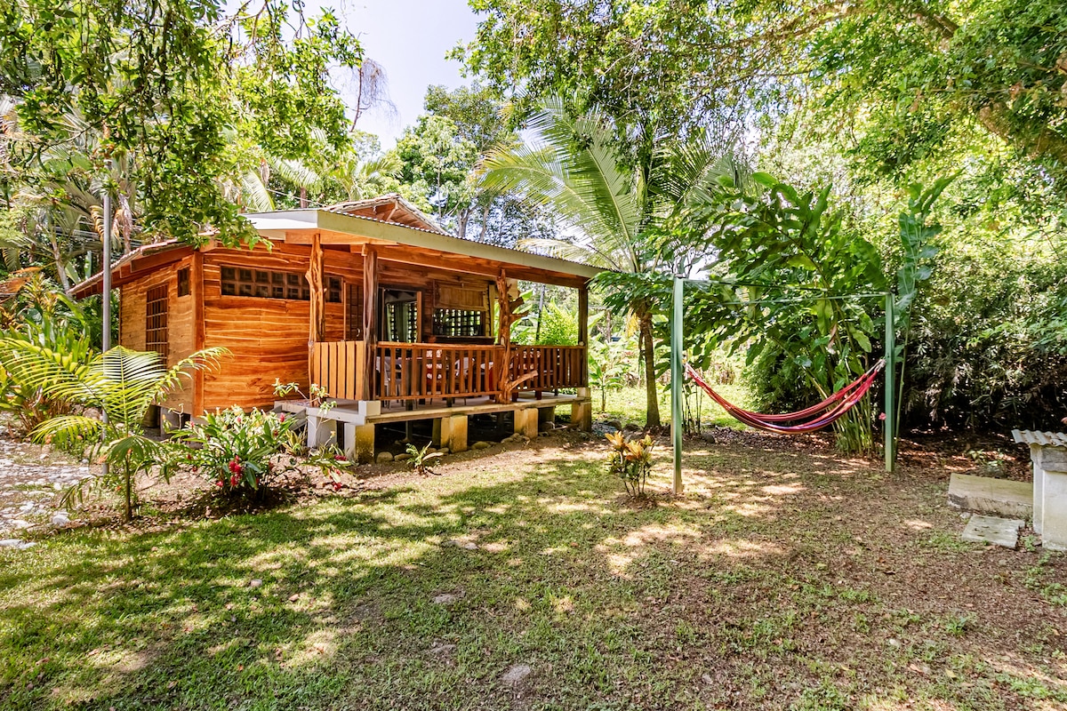 Wake up to the chirping of birds and greet the sunset with the sound of monkeys and other typical rainforest animals in this open-concept, handcrafted cabin made of native wood, 300 m from one of the most beautiful beaches in the South Pacific, Playa Chamán. The cabin has two floors, downstairs an open space with a living -dining - kitchen, a shower surrounded by plants and a small terrace. Upstairs, a spacious bedroom with mosquito netting and a balcony with an incredible view and hammock.