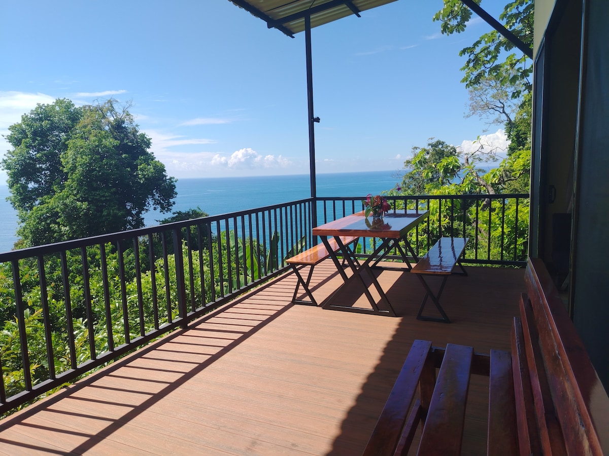 Beautiful 4-bedroom house with an equipped kitchen and 3 bathrooms, offering panoramic views of Drake Bay and sea. Located just a 4-minute walk from the beach and the departure point for tours to Corcovado National Park and Caño Island. The house accommodates up to 12 people. All rooms are equipped with air conditioning and Wi-Fi. On the balcony, guests can enjoy the beautiful views, tranquility, and the experience of bird watching. We are a local family waiting for you in our little paradise