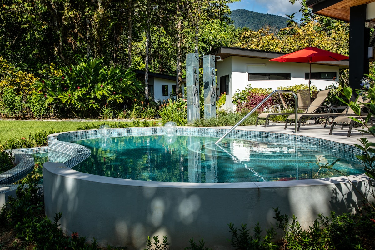Tucked into the lush jungle canopy on the grounds of our private hilltop villa, this charming studio-style casita offers the perfect blend of comfort, privacy, and natural beauty. Wake up to birdsong, watch the monkeys swing by, and immerse yourself in the pure energy of the rainforest. Designated sleeping area, private patio, kitchenette, and private bathroom. Dedicated parking spot at your doorstep. A 4x4 is required—ask us about local car rentals or transport options!
