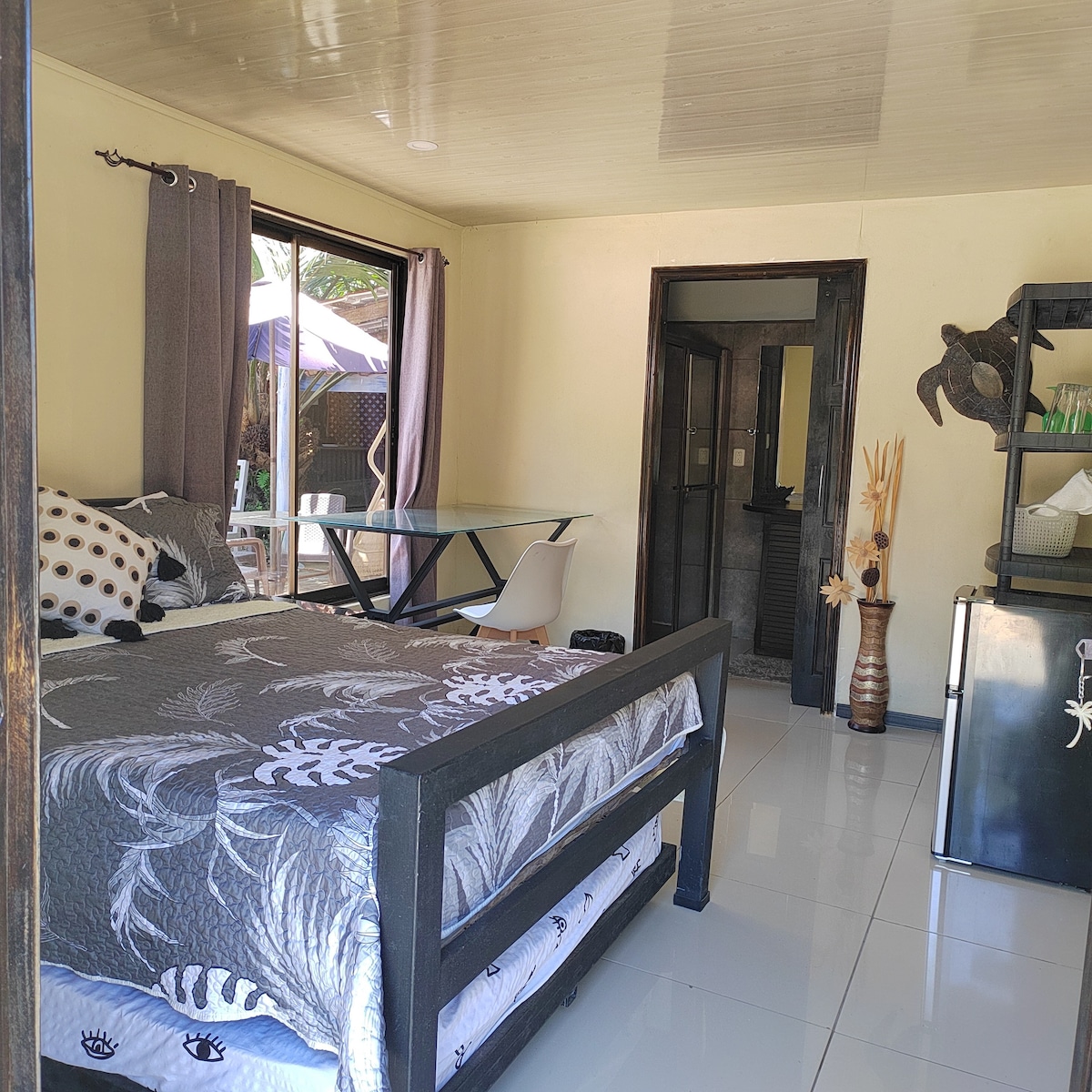 Conecta con la naturaleza de Uvita de Osa en este acogedor studio privado junto al bosque con vista al mar donde los amaneceres y atardeceres abrazan este tranquilo lugar. Localizado muy cerca de las playas, ríos, cascadas, restaurantes y todos los servicios. Disponible para dos personas, cama Queen, cuarto de baño privado, ducha con agua caliente, A/C, una pequeña refrigeradora, coffee maker, TV y WIFI. El parqueo es amplio, seguro y acceso privado con portón accionado a control remoto.