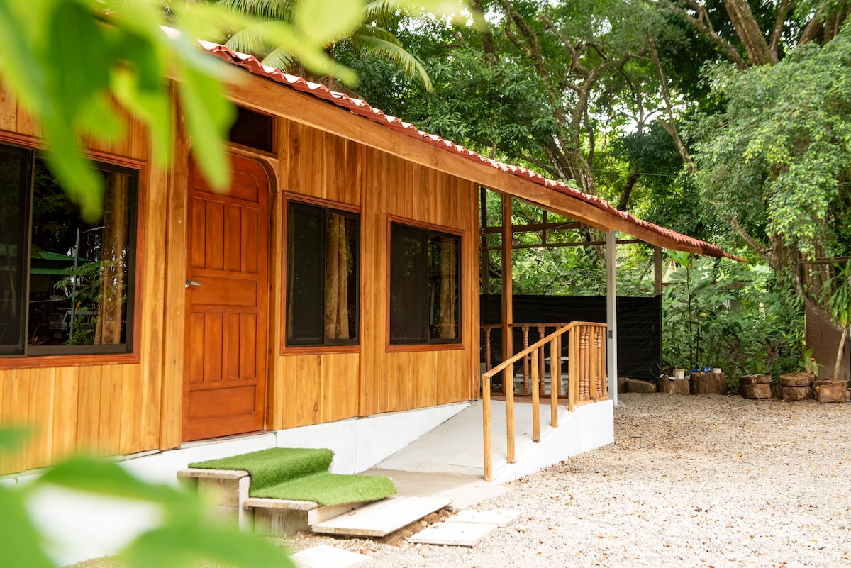 Tortuga Riverfront Premium Villa with a pool and near the beach. Soak in the jacuzzi pool on your covered terrace overlooking the river and our elaborate tropical gardens. Includes an equipped kitchen, air-conditioning, bathroom, covered terrace, & a massive 50ft swimming pool. Surrounded by a beautiful Nature Park, which means you will enjoy amazing wildlife thriving all around the property! 2km to the beach and 5 minutes from the heart of Uvita. River, Jungle, & Beach!