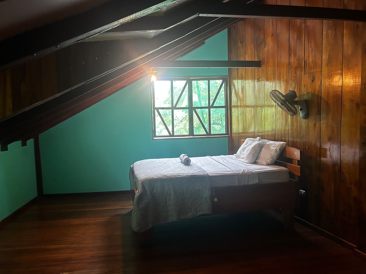 Enjoy the comfort of the Ara Macao room, featuring two bedrooms with one queen bed, sofa bed and extra twin bed, A/C, private bathroom with hot water, Wi-Fi, cable TV, and safe. Surrounded by lush nature, you may spot monkeys and birds right from your window. Includes breakfast and access to the pool. Just steps from Manuel Antonio National Park and close to beaches, trails, and restaurants. Perfect for couples or solo travelers looking for comfort in a tropical setting.