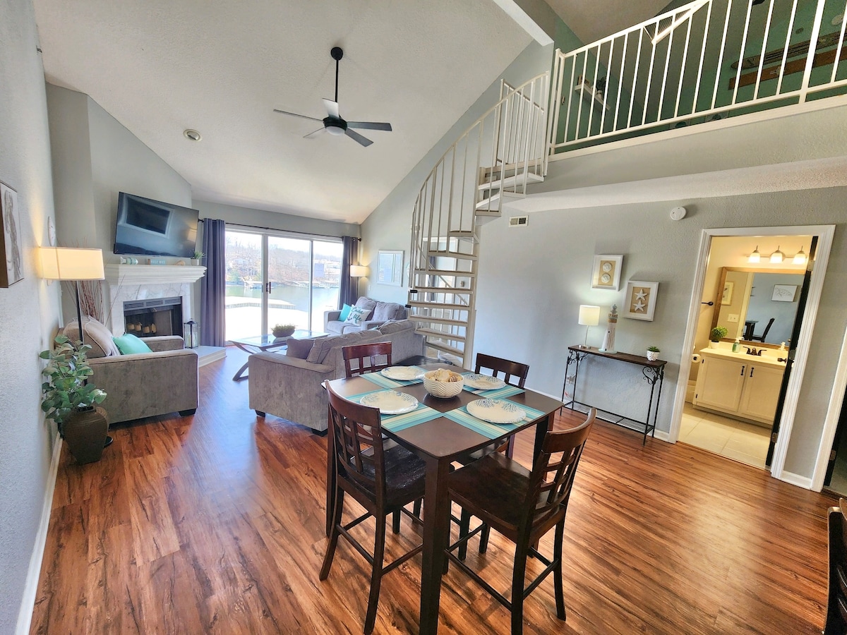 Let our treehouse style villa nestled in a quite cove of off MM17 help you relax and enjoy the beauty of Lake of the Ozarks. A short drive to everything Osage Beach has to offer, yet far enough away to allow you that time to connect with family & friends. You'll feel right at home in our newly renovated and well stocked kitchen. We love the open layout that the unique design of the villa provides. Make this your Lake of the Ozarks vacation home for many years to come.