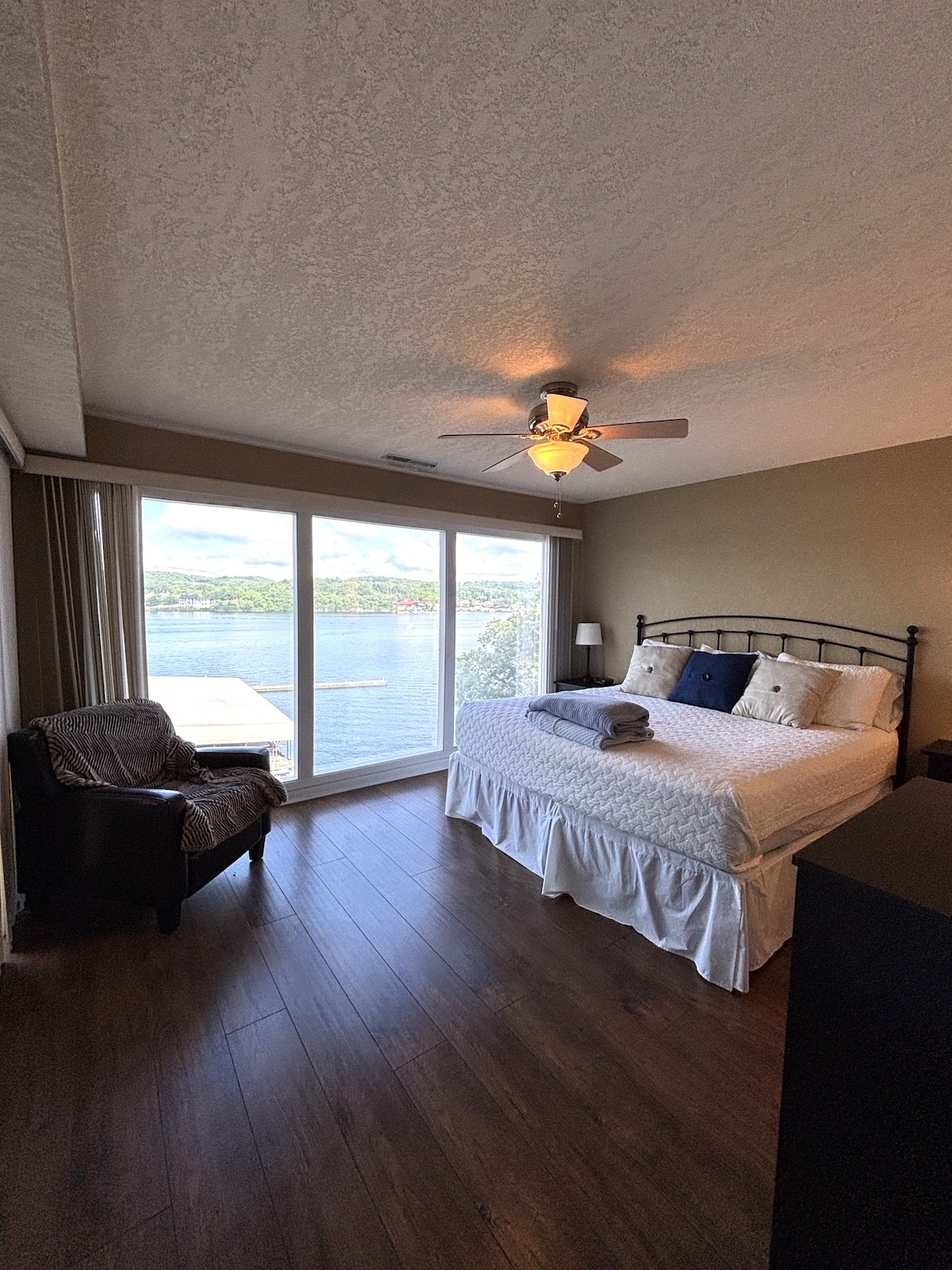* Lakefront*Unobstructed Views*Newly Remodelled*New Furnishings*Lighted ShuffleBoard*65" Frame TV* New King Size Bed*Covered Patio*New Appliances*Updated Bathroom*High Speed Internet*Cable TV Traveling with friends or need more room to spread out? We’ve got you covered. Just downstairs, we also host a separate 2-bedroom, 2-bath unit with its own fireplace, covered patio, and the same incredible lakefront views — perfect for a group trip while still enjoying your own space.