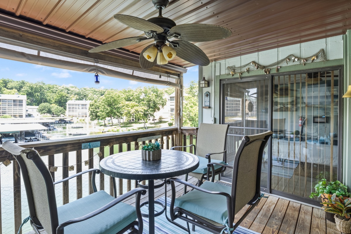Stunning one bedroom with king bed Condo located in Osage Beach. Amazing views! Covered, screened in deck looking out onto the lake. Renovated SPA bathroom with Italian marble. Hardwood floors throughout. Cove location/21 mile marker. Amenities include boat slip for rent, fishing, fireplace and pool! Many fine restaurants, great shopping, and fun things to do by land/water. Enjoy all year round with patio heater and electric fireplace! Available for short/long term lease, as well