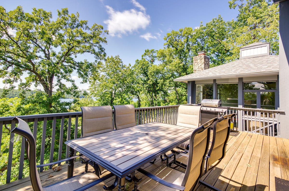 Half-Block to Community Pool | Furnished Deck | BBQ Ready Experience the ultimate Lake of the Ozarks escape at this Osage Beach vacation rental! This spacious home offers a deck with stunning lake views, 3 bedrooms, 3 full bathrooms, and 2 half bathrooms. With easy access to top attractions, like the Margaritaville Resort, Jolly Mon Indoor Water Park, and Lake of the Ozarks State Park, adventure awaits just moments away. After, fire up the grill for dinner and unwind by the Smart TV!