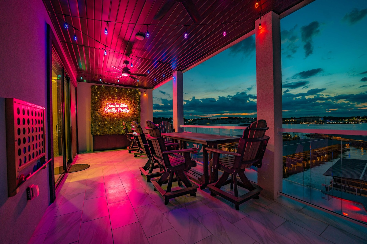 Welcome to our stunning vacation rental located at exclusive Lands End Pkwy. Our property is a luxurious and spacious 3 bedroom, 2 bathroom (sleeps 9) condo that offers breathtaking views of the lake and surroundings. The condo also has a private 2022 27ft Tritoon available to rent. The condo features an open floor plan with high ceilings allowing for ample natural light. You will find many custom features throughout. Other amenities include waterpark, lazy river, pool with waterfall.
