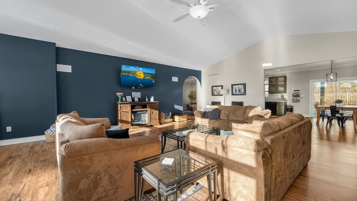 Resort-style living at our 2-bed, 2-bath condo at Lake of the Ozarks. Perfect for up to 6 people, our luxurious condo is equipped with comfortable couches and mattresses, a well-equipped kitchen, TVs in every room, wet bar, and board games. On-site, you'll have access to 6 outdoor pools, tennis and basketball courts, fishing lakes, discounted golf, and more. The largest swim-up bar in the Midwest is just yards away, and the Strip is a short drive. We allow up to 2 dogs. Book your stay today.