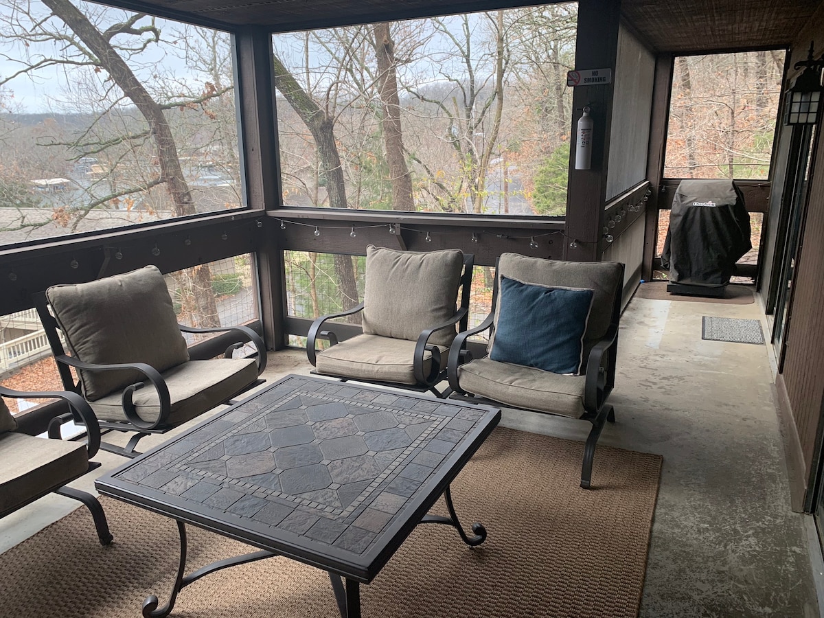 You deserve a Getaway! Quiet condo located near everything. Feel free to stay in and enjoy the amazing views of the lake or adventure around the Ozarks. Start your morning on the patio with a cup of coffee, enjoy the sunsets with a glass of wine. We are conveniently located, located 10 min from grocery stores, great restaurants, and entertainment allowing you to explore the great attractions the lake has to offer. Two amazing pools, hot tubs, tennis courts, walking trails nearby, fishing.