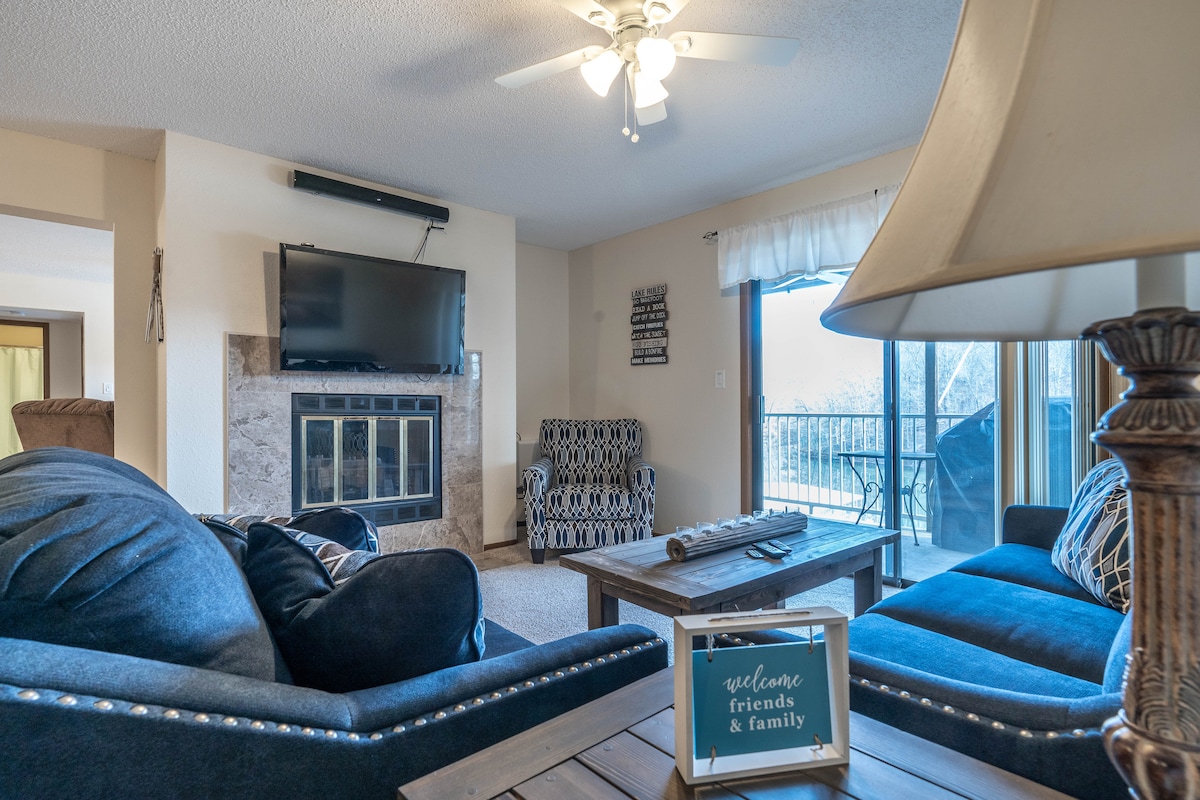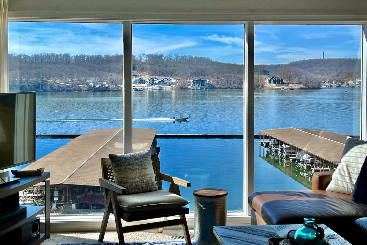 You're sure to enjoy your stay in this stylish lake front condo centrally-located at the desirable 21 MM in the heart of the Lake of the Ozarks. Located just off Hwy 54 in Osage Beach, lakefront restaurants and bars are minutes away by both land and water. Grocery stores and shopping are just down the road, and the condo is equipped with everything you could possibly need if staying in is your thing. The complex offers a pool, laundry facility, tennis/pickleball courts, and an on-site boat ramp.