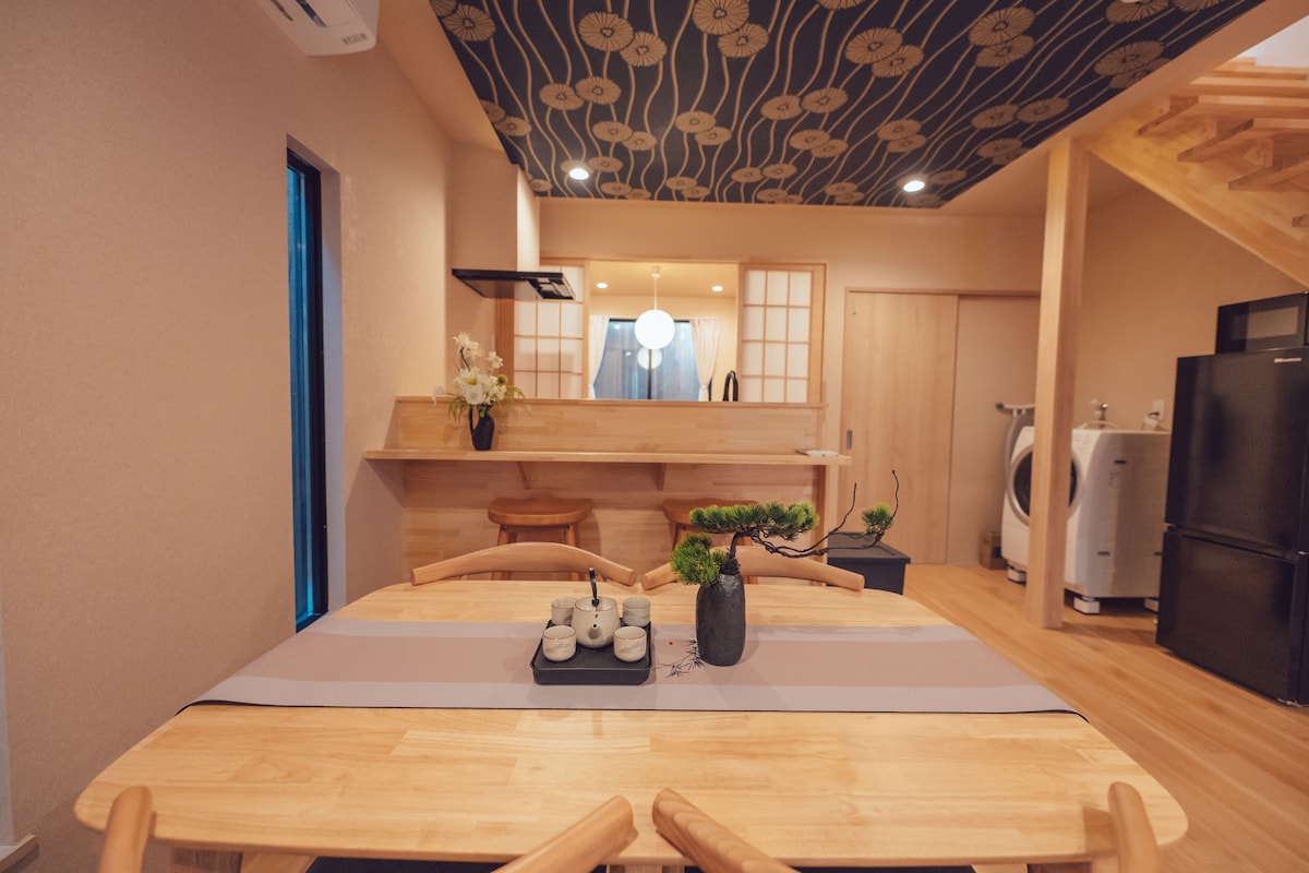 家は、こじんまりとした民家ですので、大人4人での利用が、余裕もあり満喫いただけるかと思います。この素敵な空間に滞在してみて下さい。 ★隣がBar★ですので22時頃迄は話し声や歌声がしますのでご了承下さい。 そのかわり、夜遅くまで音を気にせずにおしゃべり大丈夫です。地下鉄花園町駅のすぐ近くに、癒しの空間が出来ました。日本の文化を大切にしつつ、癒しと優しさを兼ね備えた家です。1階はバリアフリーになっており、車椅子や足に不安のある方も過ごしやすくなっております。木の美しい木目を感じられる空間で疲れをとり、観光を楽しんで下さい。観光地にも近く、交通も便利。駅の入り口まで徒歩1分程。スーパーやコンビニ、飲食店も近くにあり、とても便利です。家は大きな道路から少し小さな道に入った所にあり、日本に住んでいる気分になるような、落ち着いた場所です。深夜は静かですが、隣がBarですので22時頃迄は話し声や歌声がしますのでご了承下さい。その代わり、外食には困りませんし、日本のごく普通の暮らしを体験出来ます。難波まで2駅ですので、奈良や京都、和歌山にも行きやすいです。関空からも電車で便利です。