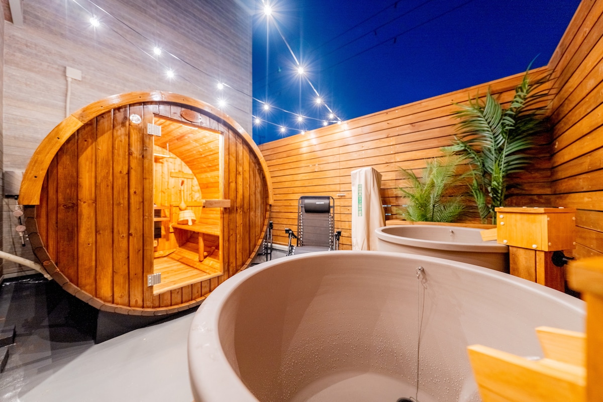 配备桑拿与半露天浴池|和风现代治愈空间・交通便利・高速Wi-Fi