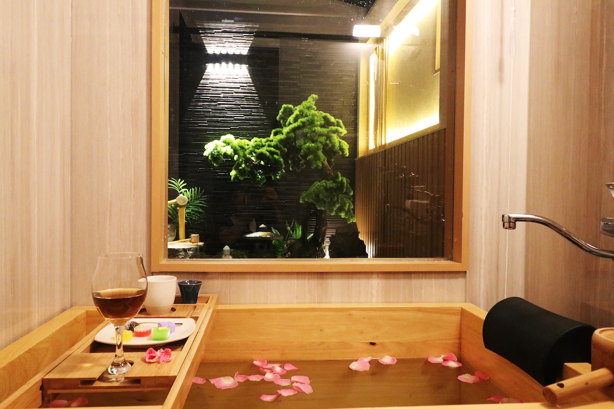 アウトサイダーアートを展示する「DISTORTION 9」は、2020 年 7 月オープンのギャラリーホテルです。 〈こちらは1階部分のみのご予約ページとなります。〉 1階バルコニーの露天風呂も含めてプライベートでご利用いただけます。屋内にはシャワールームもあります。 最大 4 名様までご宿泊可能ですが、もし2 フロア(1階と2階)を貸し切りで予約したい場合は最大 8 名様までご宿泊いただけます。2 フロア貸し切りをご希望の場合は予約前にお問い合わせください。 ギャラリーとして展示している作品は、滋賀県甲賀市にあるアートセンター&福祉施設「やまなみ工房」で日々創作されるアウトサイダーアート。館内で展示している作品だけでなく、ホテル前の自動販売機ではオリジナルパッケージアートもご購入いただけます。室内にある大画面TVでアマゾンプライムの映画をご覧いただけます。 また、おそらく大阪難波唯一の露天風呂付客室です。水着を着用していただいたり、カーテンを閉めてゆっくりリゾート気分を満喫してください。
