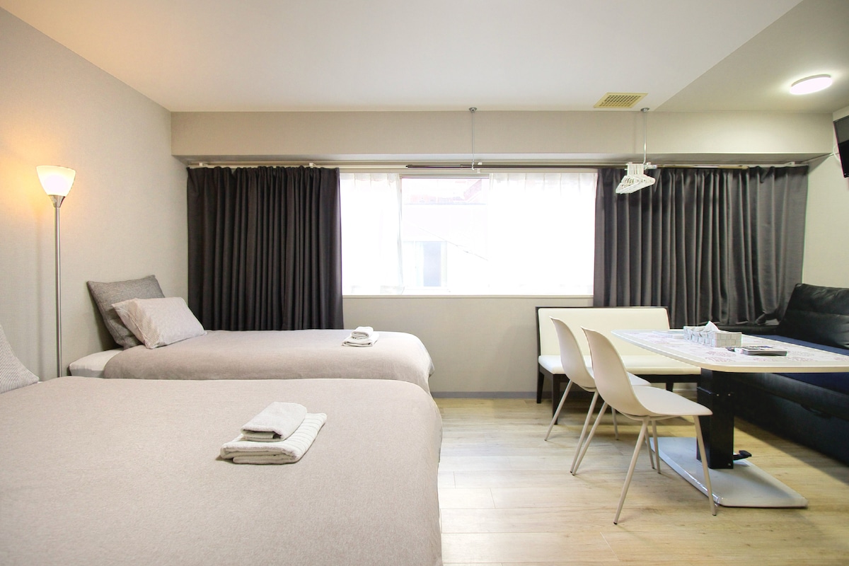 Tsuruhashi Station步行2分钟无烟双床间27平米的私人浴室