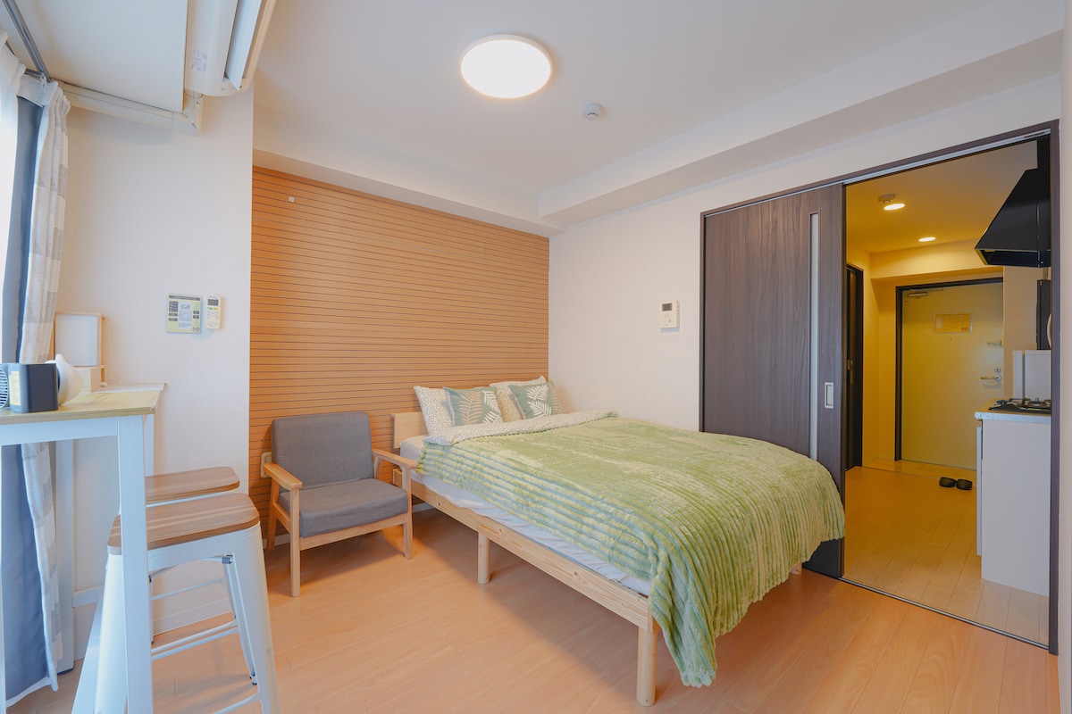 这是一间设计师风格的1LDK28.8㎡公寓。距离阪神难波线和大阪地铁中央线的九条站仅步行4分钟,乘坐阪神电车到难波站仅需3站,7分钟,到达关西机场只需一次换乘105分钟。从阪神九条站到环球影城只需一次换乘21分钟。步行15分钟即可抵达京瓷巨蛋大阪。位置优越,可轻松抵达大阪旅游的中心地带,如南部地区,心斋桥,新大阪和其他著名景点。附近有九条商店街等多个商业区,方便您享用美食、购物和观光。 这间公寓由知名设计师设计,拥有舒适的居住空间。 特点: -位于安静的住宅区的设计师风格的1LDK公寓 -最多可容纳4人入住 -步行1分钟即可到达超市和便利店 -配备基本烹饪设备 -整套出租 -自助入住系统 -免费洗衣机(提供免费洗衣液) -提供充足的洗浴用品(洗发水、护发素、沐浴露、浴巾、拖鞋、牙刷、化妆棉、棉签、剃须刀) -支持日语、英语、中文 -高速WiFi覆盖