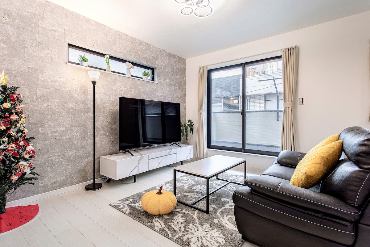 梅田嶄新獨棟-3臥2浴!3線交匯處,到車站2分。直達心齋橋難波,至USJ15分鐘。住5晚免費送機服務