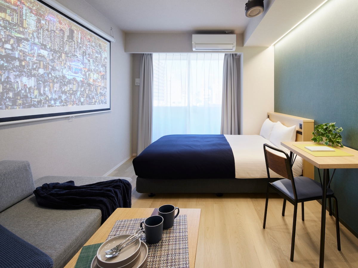 広々とした25.28㎡の客室には、ダブルベッド1台とソファベッド1台を備え、最大3名様までご宿泊いただけます。 Minnは広めのお部屋にみんなで泊まれるアパートメントホテル。キッチンや家電完備で暮らすように泊まれるお部屋で、ご家族や3名までのお友達どうしでのご宿泊にぴったりです。 梅田まで徒歩圏内の中崎町エリアはレトロな街並みと現代のカフェやショップが共存するエリアです、フォトジェニックなスポットが多く散策に最適です <おすすめPOINT> ■ 広めのお部屋にキッチン・家電付きで暮らすように泊まれるレイアウト ■ 梅田まで徒歩圏内・日本一長い天神橋筋商店街まで徒歩5分 ■ コンビニまで徒歩4分 <こんな方におすすめ> ■ お子様連れご家族でのご旅行に ■ 大阪のローカルエリアを味わいたい方 ■ 大阪・梅田を拠点にあちこち観光地を巡る方