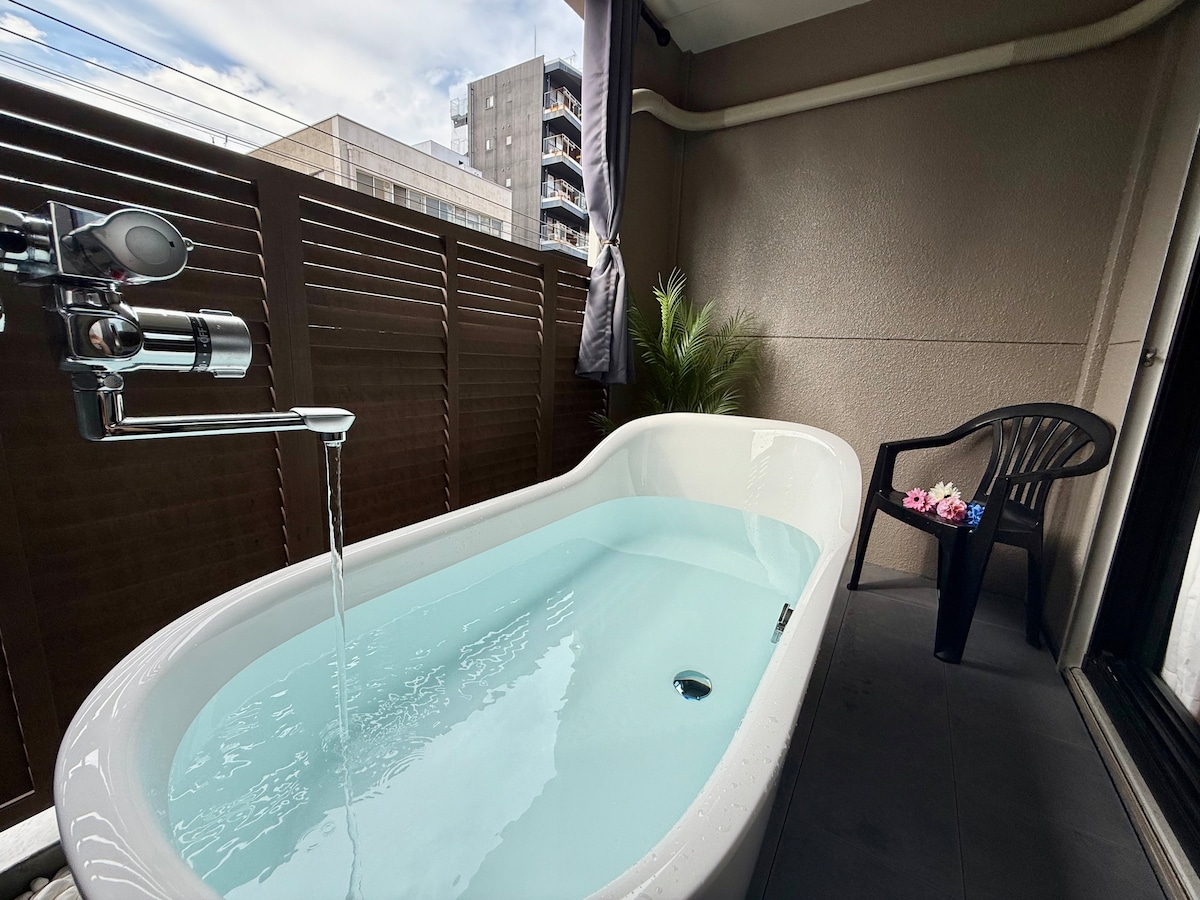 大阪心斎橋中心稀有房源,带有私人泡澡空中庭院。商店街、道顿堀、日本桥、黑门市场徒步即可到达