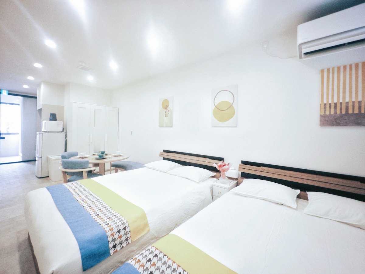 1【有行李寄存柜,设施齐全】预约开始 禁烟人士专享住宿,干净舒适!心斋桥难波徒步 宽敞房间 舒适床铺
