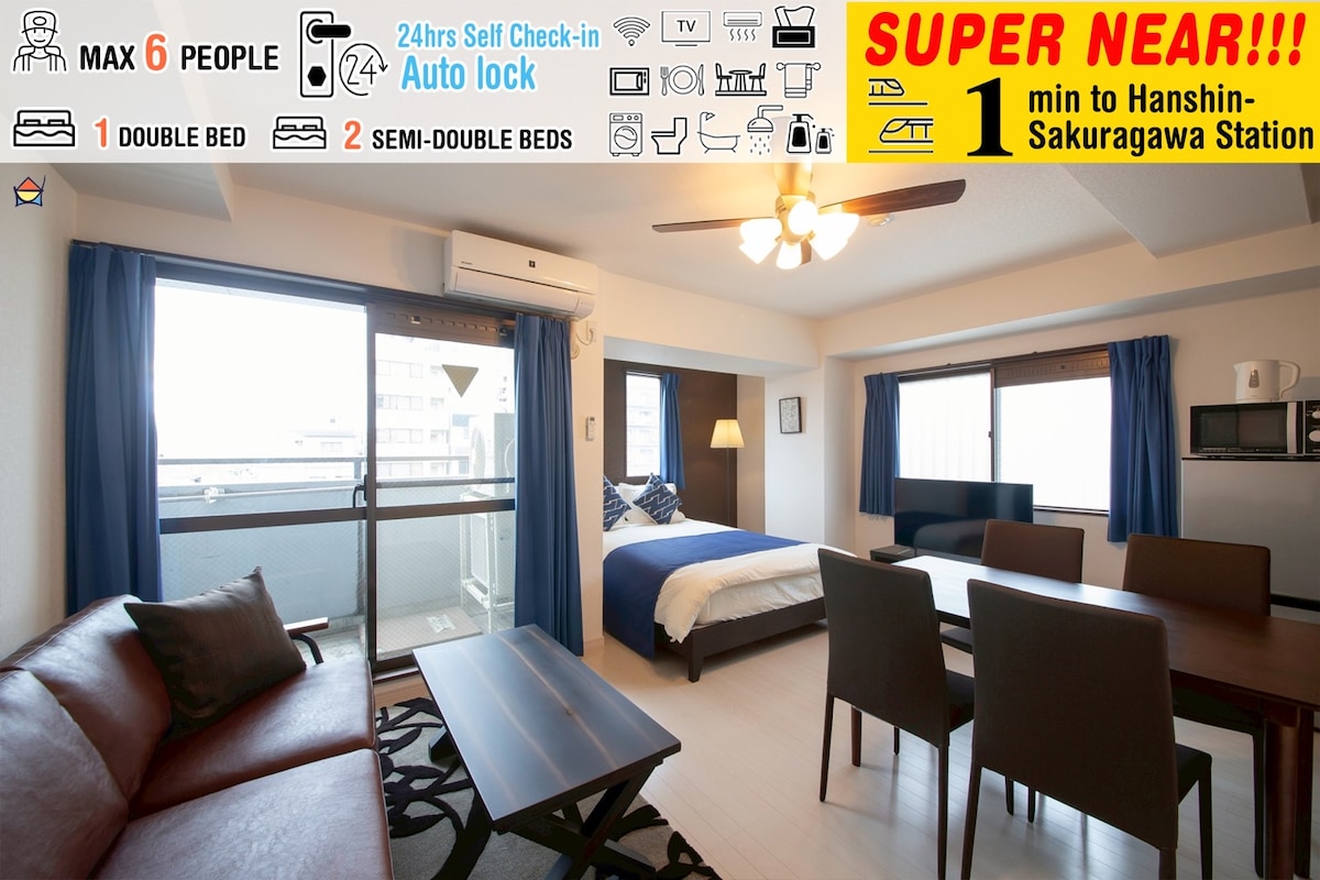 🏡 【 舒适公寓】步行1分钟到车站!直达心斋桥·难波·USJ·大阪巨蛋!401号室 翻新后重新开业! 全新沙发与寝具,欢迎您的入住! 🔑 自助入住: 电子锁免交接,轻松又安全! Crice Hotel Namba II ✨ 超便利位置: 阪神线/地下铁樱川站 步行1分钟,交通无敌! 轻松前往 心斋桥、难波、日本桥、USJ,玩转大阪! 近 大阪巨蛋,演唱会/棒球赛后住宿首选! 13分钟到道顿堀 20分钟到环球影城USJ 28分钟到新大阪站 54分钟到京都站 1小时到关西机场 🛒 周边超方便: 24小时便利店 1分钟,超市 5分钟 超多美食店,夜宵不愁!🍜🍤 🛏️ 舒适设施: 免费WiFi|网络电视|空调|浴室|智能马桶 厨房|洗衣机|毛巾|吹风机|空气净化器 适合好友/家庭入住,长住也超舒适! ⏰ 入住/退房: 16:00后入住,10:00前退房 (可提前入住前寄存行李,需咨询,按情况有可能无法提供) 🚭 禁烟提示: 室内全面禁烟,请至电梯旁指定区域吸烟(请保持安静)。