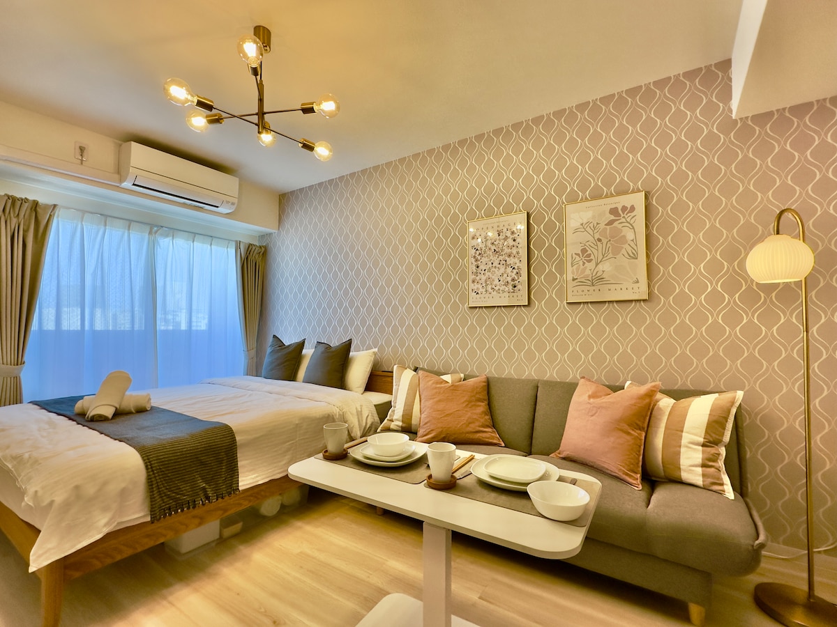 Spacious apartment with fancy interior in the heart of the popular shopping area, Shinsaibashi. All shops and restaurants are in the walking-distance. It is also easy to go to Dotonbori, Shinsaibashi, Kyoto, Nara, Kobe, and USJ. Furnitures are stylish design, and you could easily know the difference from other apartment. Accessibility is perfectly good not only to all the sightseeing spot in Osaka, but also to Kyoto, Nara, Kobe, and USJ.
