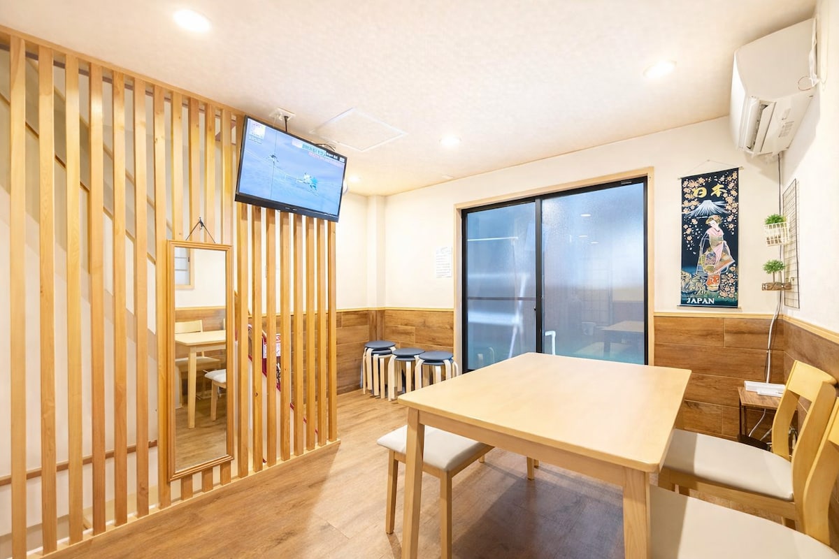 步入这栋隐于大阪市天下茶屋车站徒步仅4分钟日式民宿,仿佛穿越至一幅流动的和风画卷。这里,我们将传统日本的雅致与现代舒适交织,最多可容纳8位旅人,是您与家人、挚友共享日本旅行的梦幻居所。 **房源魅力:** - **和风诗境**:榻榻米散发淡淡草香,滑动门轻启,精致的品茶区静候您啜饮抹茶,沉浸于日本文化的悠远意境。 - **庭院秘境**:窗外竹影婆娑,枫叶摇曳,尤其在沐浴时,透过玻璃尽览庭院美景,仿佛与自然共浴,洗去旅途疲惫。 **周边与交通之美:** - **舌尖上的日本**:周边环绕地道日式餐厅,每一口都是对日本风味的深情礼赞。 - **直抵心扉的旅途**:关西机场直达天下茶屋车站,无需换乘,旅程从容启航。 - **关西风光尽揽**:车站交通如诗般流畅,京都的古韵、奈良的鹿鸣、神户的浪漫,以及大阪环球影城、通天阁、心斋桥与海游馆,皆触手可及. 在这里,您不仅入住一栋房子,更是开启一场真正的日本之旅。庭院的风铃轻响,浴室的自然低语,茶室的袅袅清香——每一处细节都在诉说和风的温柔。立即预订,让这场诗意的旅居成为您大阪记忆中最美的篇章!