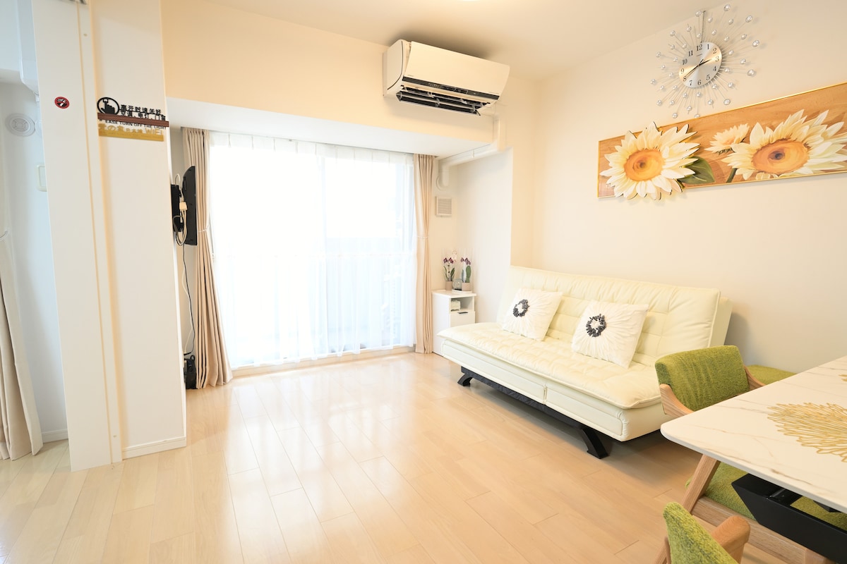 Spacious apartment with fancy interior in the heart of the popular shopping area, Shinsaibashi. All shops and restaurants are in the walking-distance. It is also easy to go to Dotonbori, Shinsaibashi, Kyoto, Nara, Kobe, and USJ. Furnitures are stylish design, and you could easily know the difference from other apartment. Accessibility is perfectly good not only to all the sightseeing spot in Osaka, but also to Kyoto, Nara, Kobe, and USJ.